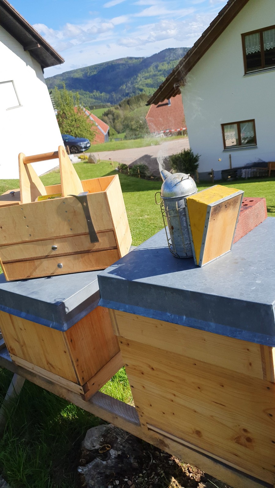 gemeinsam mit einem Freund, mit dem Imkern begonnen. Meine Bienenwohnungen (Beuten) konstruierte ich bienengerecht selbst. Diese wurden anschließend direkt selfmade gebaut.